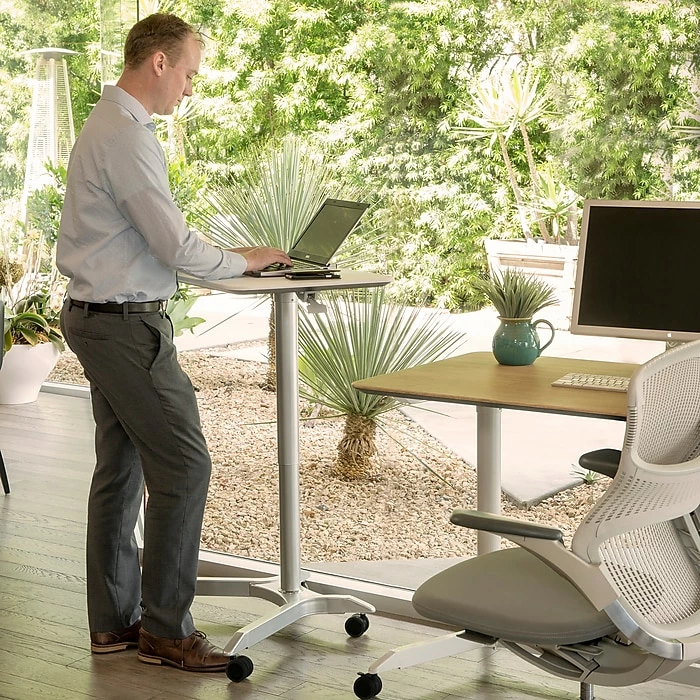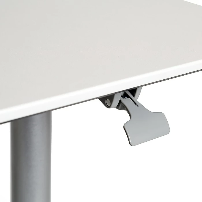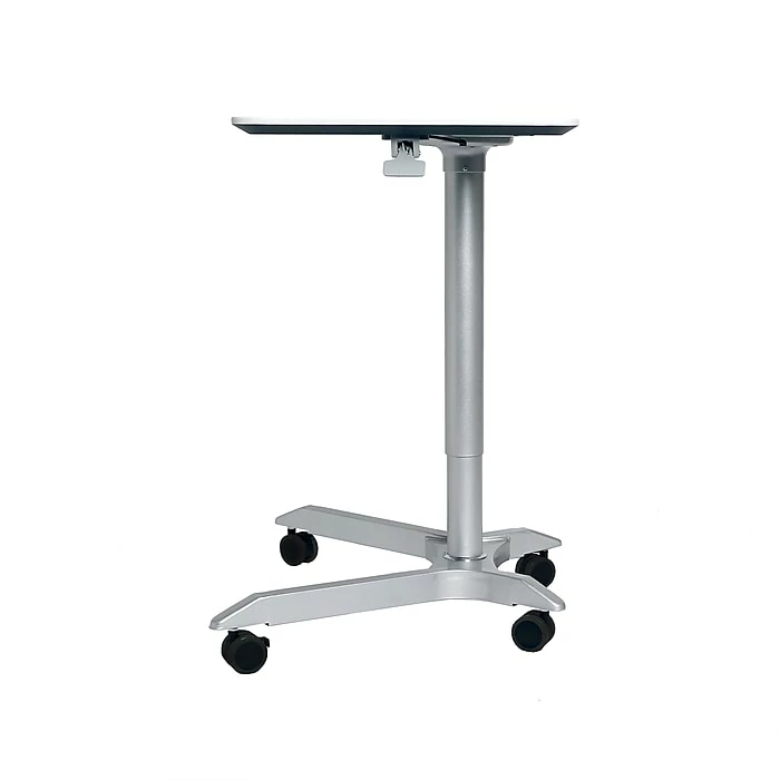 Work the way you want with Seville Classics AIRLIFT XL Pneumatic Sit-Stand Mobile Desk Cart. This desk is height-adjustable with a lever operated pneumatic cylinder coated in a silver finish. Adjust the desk with the touch of a lever from 27.1 to 41.9 inches high. The rectangular top features an elegant white finish with inwardly beveled edges–it’s also big, measuring 28.1 inches wide by 19.6 inches long. Mobility and stability matter, so we designed this desk cart with a rolling, wobble-free steel base; includes a pair of normal and locking 2.4-inch casters. Use it your way: at home, as a computer table; in school classrooms, as a podium; or at work as an ergonomic alternative to standard office desks.