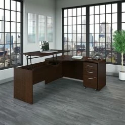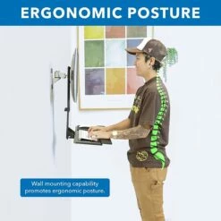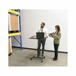 Stay productive with this stylish and ergonomically shaped standing desk. The 40-inch-high work surface has a retractable keyboard shelf and a 44.5-inch-high shelf for easy access to monitors and other items while staying comfortable on your feet. This Balt standing workstation can be moved anywhere it’s needed thanks to four 2-inch casters.