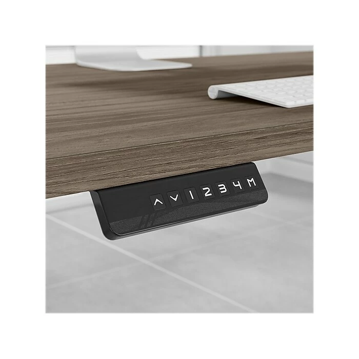 This Bush Business Furniture Studio C electric height-adjustable standing desk and credenza set combines wide work surfaces with a comfortable design and convenient features to keep you on task. Sit and stand throughout your day without missing a beat. The electric adjustable desk includes a 10′ power cord and smoothly lifts from 27″ to 46.7″ at the push of a button. Store your favorite heights with four programmable presets, so you can use them as often as you like. Make room to spread out and work on a variety of projects on the 60″W credenza desk while storing your paperwork inside the mobile file cabinet. For your letter-, legal-, and A4 size files along with office supplies, the contemporary cabinet rolls anywhere or remains in place as needed. Backed by a 10-year manufacturer warranty and meets the ANSI/BIFMA quality standards. American-made with US and imported parts.