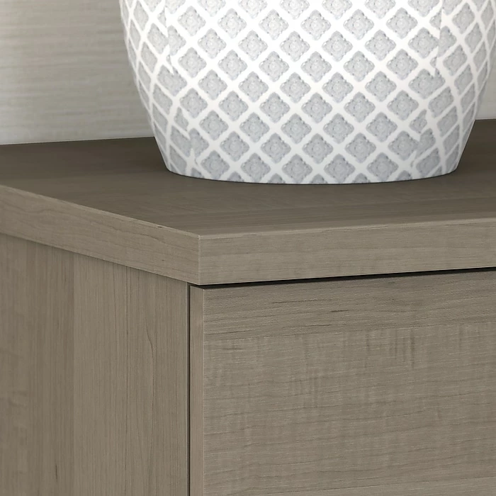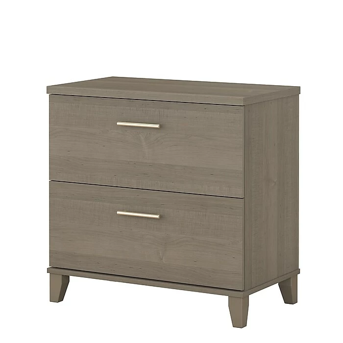 The Bush Furniture Somerset Lateral File Cabinet provides an appealing home office storage solution. Two large full-extension file drawers extend on ball bearing slides for easy access to letter and legal-sized documents, even those all the way at the back. The drawers feature an interlocking mechanism that reduces the likelihood of tipping, making this File Cabinet a safe and family-friendly addition to your home. The height of the Cabinet matches any Somerset Desk (sold separately) to allow for an extended work surface when placed side by side. Transitional styling includes tapered leg accents, your choice of four stylish finishes and contemporary metal hardware. This quality furniture is tested to meet ANSI/SOHO standards for safety and performance and is backed by the Bush Furniture 6 Year Manufacturer’s Warranty. American made with U.S. and imported parts.
