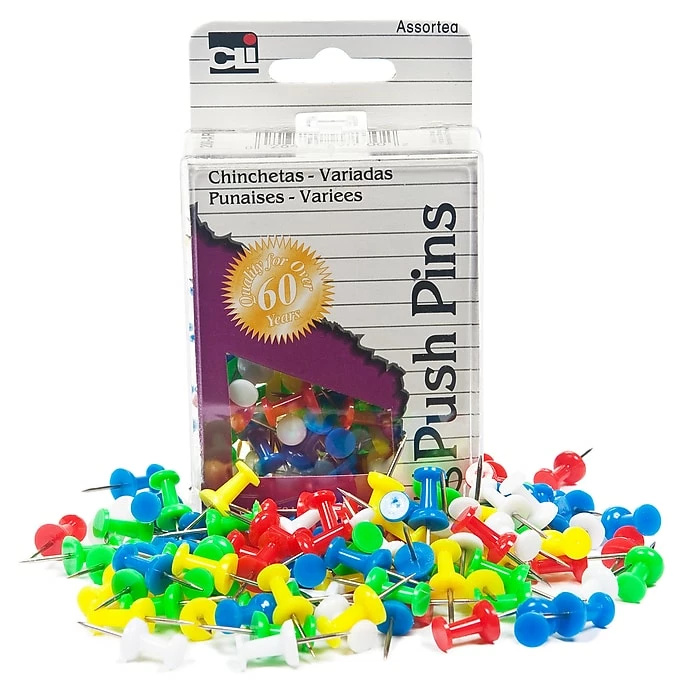 Charles Leonard 7/16″ Push pins are manufactured with precision crafted solid plastic heads that offers extra safety. Push pins have sharp pins that gets the job done easily by just pressing into the place with the thumb, sold as 100 pieces per box.