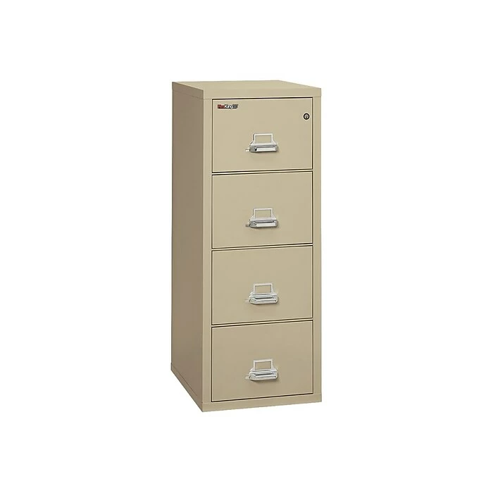 Use this heavily insulated vertical file cabinet to organize legal-sized folders. The inter-drawer insulation of this cabinet keeps files safe in the event of a fire, and the high-security key lock ensures that documents are for your eyes only. This file cabinet comes equipped with water-resistant technology, which prevents water from damaging files. With four roomy drawers, this FireKing file cabinet offers enough space to store essential papers for optimum organization.
