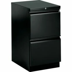 Organize a work space with this office mobile-pedestal cabinet. Three box drawers with ball bearing suspension provide easy-access storage for office supplies, and the file drawer at the bottom allows for organization of documents and hanging file folders. Place this 15-inch HON Brigade cabinet under your desk, move it easily with its swivel back casters and lock it before leaving your desk.