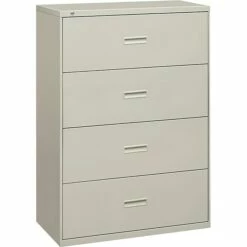 Keep paperwork organized with this HON 600 series two-drawer lateral file cabinet. Its durable steel frame can stand up to everyday use, and the two drawers operate smoothly and quietly thanks to ball bearing suspensions, while a mechanical interlock prevents multiple drawers from opening at the same time. With a two-sided lock mechanism and removable lock core, this HON Brigade 600 series lateral file keeps sensitive documents securely tucked away.