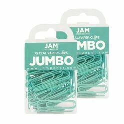 JAM Paper® Teal Colored Jumbo Paper Clips are made from sturdy vinyl coated steel wire. Each box contains a total of 75 paperclips. Each one is 2 inches long, making them great for securing heftier projects and stacks of documents. The bright teal color of these paperclips causes them to stand out in any office, locker, desk pile, or work space! Use them to bring a hint of color and self-expression to your ordinary work or school day! These fun and functional paperclips are ideal for clipping together paper, craft projects, attaching extra memos to files or folders, keeping checks and receipts together, and more!