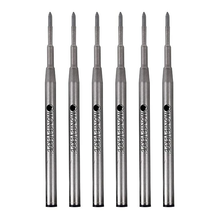 Monteverde® Capless gel refill in black for Montblanc® ballpoint pens features metal parts with high quality formulated inks. Refill consists of gel ink and has a broad stainless steel tip offering smooth writing, sold as 6 per pack.