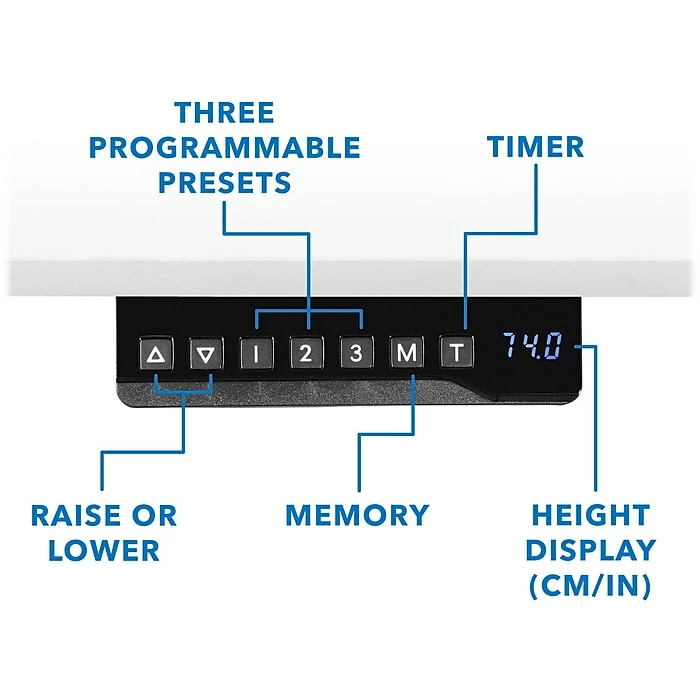 People who spend their days sitting at a computer desk can fatigue easily and are at a higher risk of eyestrain, back/neck pain, and conditions such as carpal tunnel syndrome. With the Mount-It! easy-to-use adjustable sit-stand desk, you can combat these problems with a simple push of a button. The sit-stand desk with an electric motor elevates your workstation anywhere between 29.7″ and 49.4″, allowing you to get out of your chair without interrupting your workflow or productivity. The clean and simple style will look contemporary wherever you use it. The tabletop is easily cleanable with a damp cloth.