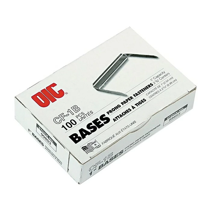 Contain document sets with these two-piece prong fasteners. Made from durable steel that resists corrosion, these OIC two-piece base-only prong fasteners are sturdy and provide long-lasting use, while the flexible design allows for quick and simple fastening on 2.75-inch centers.