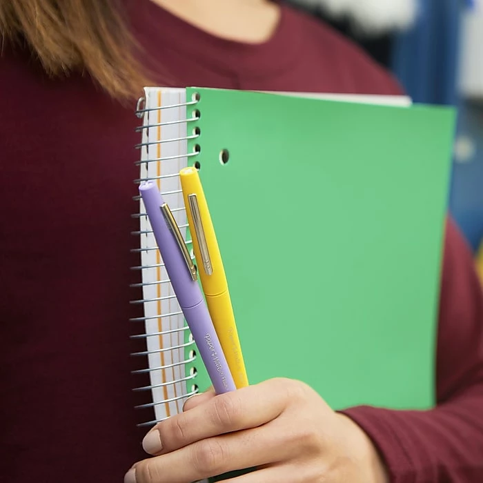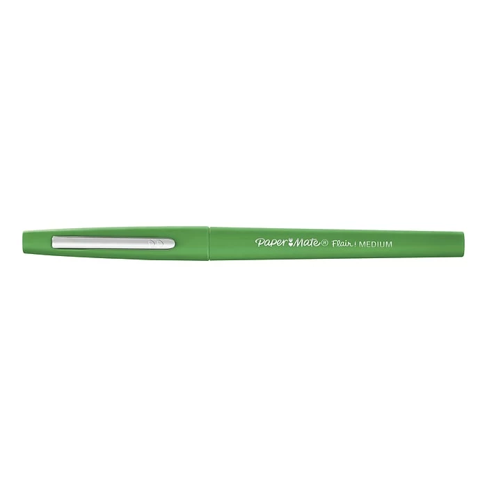 Write with precision and vivid color using these Paper Mate Flair felt-tip pens. They feature Point Guard technology to prevent tip damage and a large ink supply to provide longer life. The water-based ink dries fast to help prevent smearing, while the medium point lets you make thicker lines without sacrificing accuracy. These Paper Mate Flair felt-tip pens have a contoured barrel grip to give you maximum control.