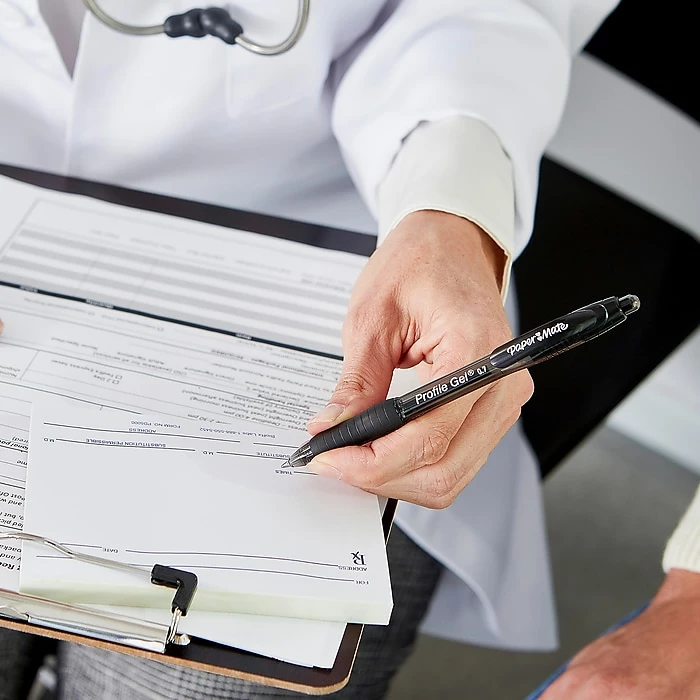 For ultrasmooth, colorful writing, turn to the Paper Mate Profile gel pen. This retractable pen features vibrant ink that stands out on the page. A soft grip lets you write comfortably, no matter the writing task. Each gel pen has an easy-glide 0.5mm tip that lays down beautiful yet fluid lines.