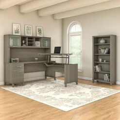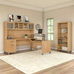 Bush Furniture Somerset 72W 3 Position Sit To Stand L Shaped Desk With Hutch, Maple Cross (SET015MC)