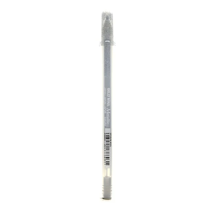Enjoy the smooth flowing comfort of a Gelly Roll pen with the creative impact of sparkling color. Great for journals, scrapbooks, notes memos and letters, invitations, greeting cards, and doodling. 0.8mm ball with a 0.4mm line. Archival quality metallic ink. Writes on white or black papers, matte or glossy surfaces. Consistent medium line to the last stroke. Will not smear or feather when dry. Waterproof and chemical proof. Fade resistant. Does not bleed through most papers. Meets ASTM and ACMI non-to xicity standards. Also available in sets .