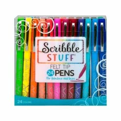 Scribble Stuff Felt Pens make bold statements. The pack comes with a rainbow spectrum of 24 unique vivid colors. The felt pens glide across paper thanks to the protective plastic nib at the base of each of the 0.8mm tips. So you can color, draw, doodle, and display your many, many works of art without worry or hesitation. These pens are great for work, home, and school.