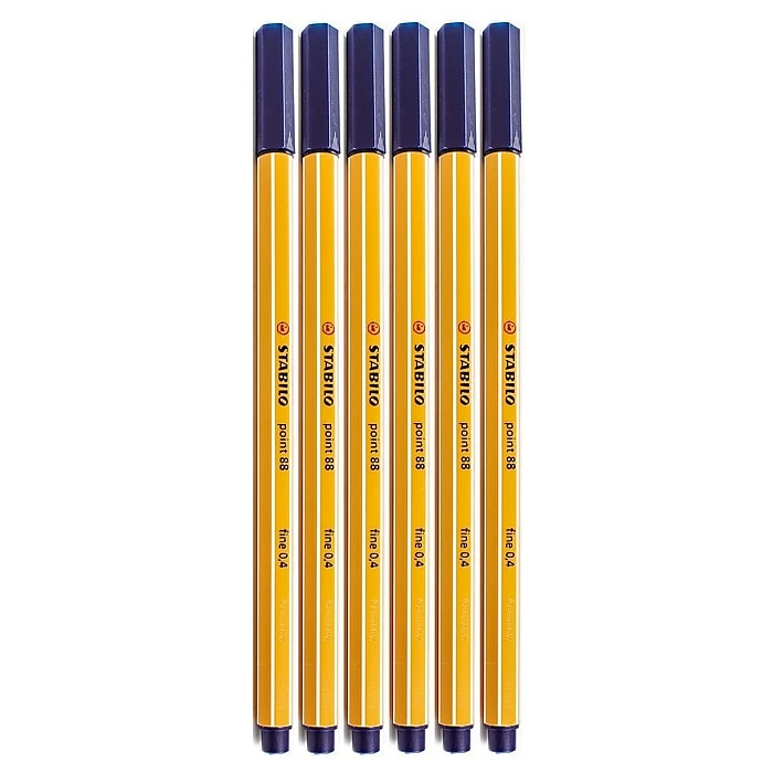This versatile fineliner is ideal for school children to professionals. The 0.4 fine point tip is metal enclosed for a long lifespan. The Point 88 has an unmistakable hexagonal striped design, and is suitable for use with rulers and stencils. These pens have a ventilated cap, and long cap-off time.