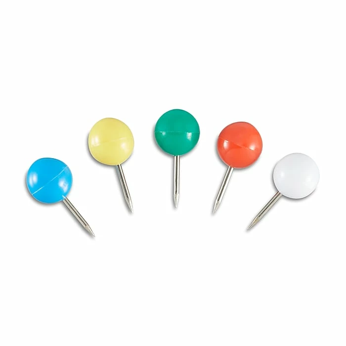 Easy-to-use pushpins are perfect for maps, bulletin boards, wall charts, and calendars