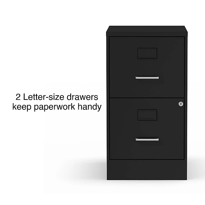 Keep documents accessible with this light duty vertical file cabinet. Integrated label holders let you categorize paperwork stored in each of the two drawers, and convenient handles make the drawers easy to open. With a compact size, this cabinet fits neatly in small work spaces. A keyed lock keeps important papers and personal items stored securely inside. This letter-size vertical file cabinet boasts a flat top surface, which offers convenient space for a printer, a fax machine or other office essentials.