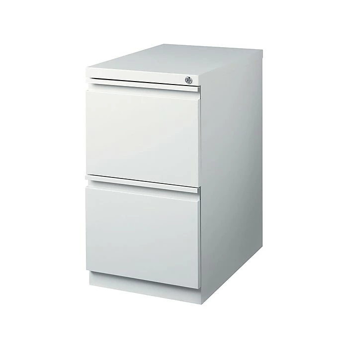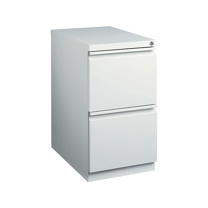 - Two-drawer pedestal filing cabinet holds letter size documents
