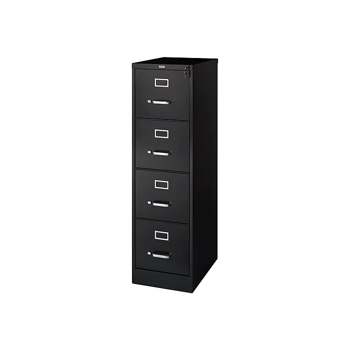 Categorize and file paperwork with this four-drawer file cabinet. The vertical layout takes up little space, making it ideal for use in smaller offices or file rooms. Each drawer boasts precision ball-bearing glides to help them open smoothly and aluminum frames for easy labeling. A core removable lock system lets you control access to the contents stored inside, so you can file sensitive information with added confidence. Featuring adjustable wire followers, this vertical file cabinet accepts letter-size hanging folders for versatile document storage.