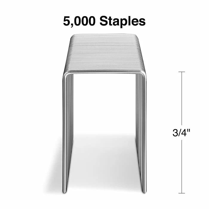 Keep multipage documents together with these heavy-duty staples which deliver high-quality performance and durability, while the long legs let you bind bulky stacks of files. These 5000-box Staples High-Capacity heavy-duty staples offer easy refills with compatible staplers.