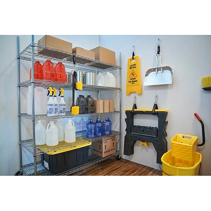 - Keeps power cords, hoses, and other trip hazards off the floor