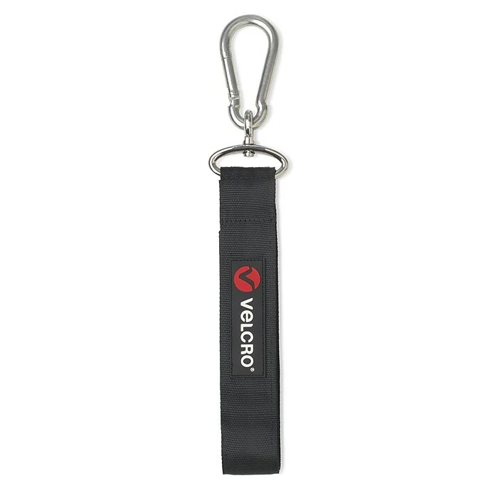 Heavy-duty storage strap designed to wrap securely around larger items or buddle cords and hoses in order hang for storage and maximum organization.