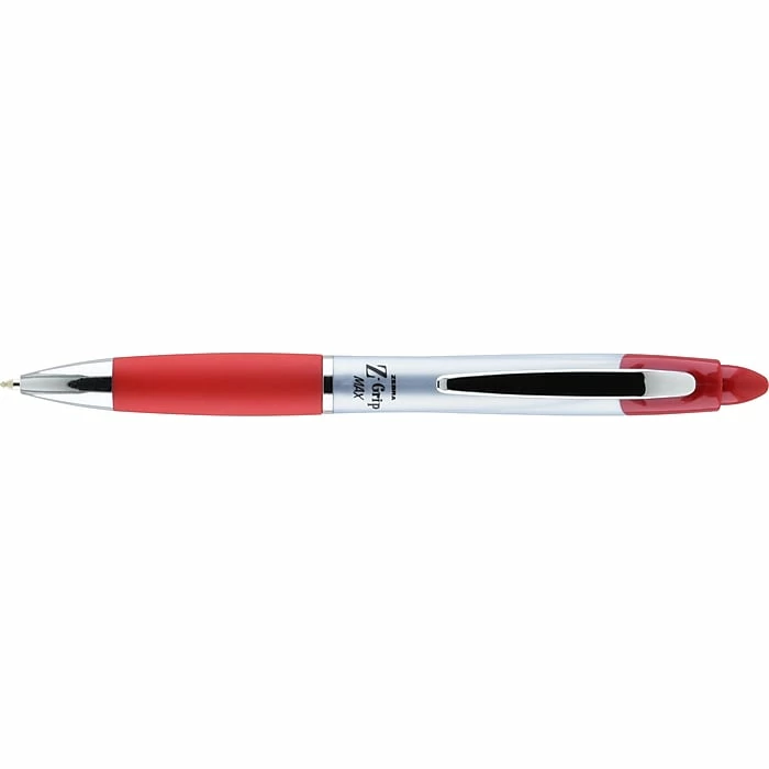 Jot down notes with these 1.0mm medium-point retractable ballpoint pens. The retractable design prevents unwanted marking when not in use, and with a dozen pens in this pack, there are plenty to lend out as needed. These Zebra Z-grip Max red retractable ballpoint pens boast a 1.0mm point for thick, consistent lines, while the quick-drying ink prevents smudging.